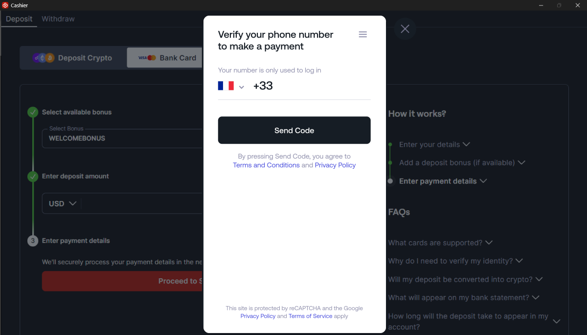 4. Invia i dettagli del pagamento: Inserisci i dati della tua carta e l’importo che desideri depositare, quindi clicca su Invia.