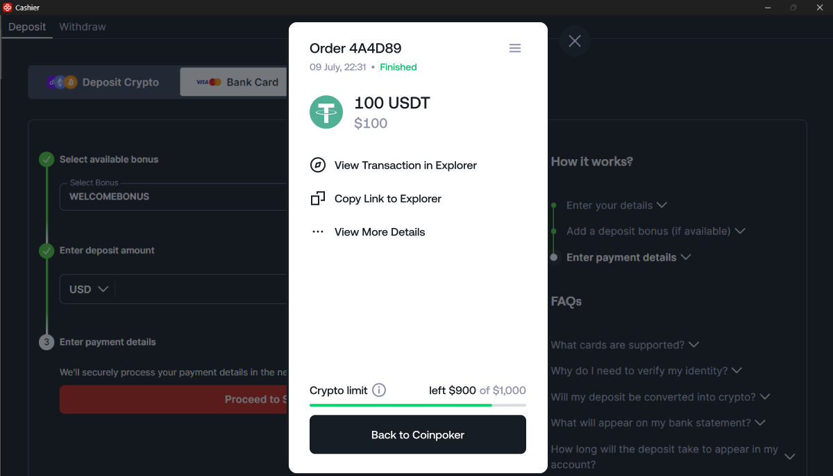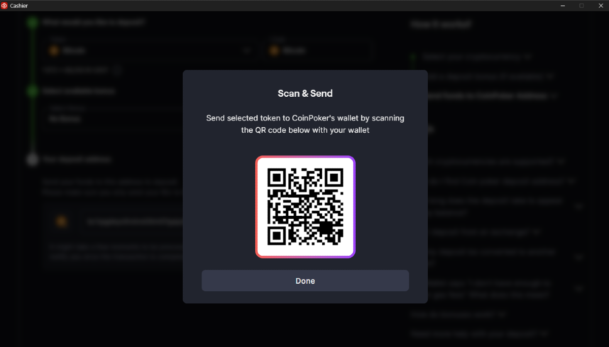 Se hai domande sul processo di deposito, per favore contatta direttamente il team di assistenza di CoinPoker.