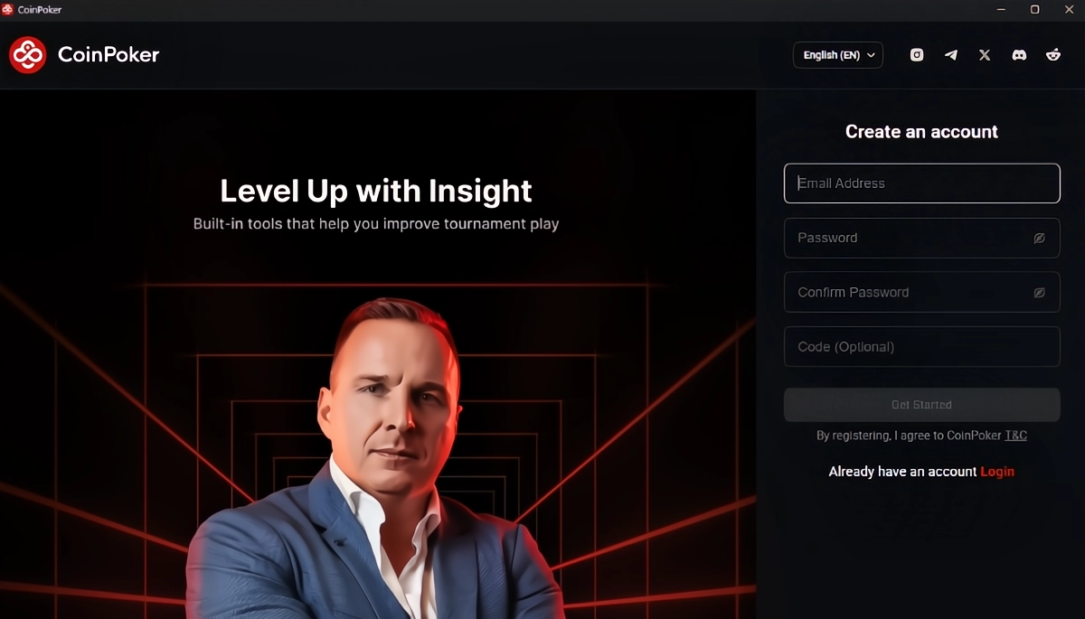 1. Accedi o Registrati: Inserisci i tuoi dati di accesso a CoinPoker o crea il tuo account online o scarica e installa l’app CoinPoker.