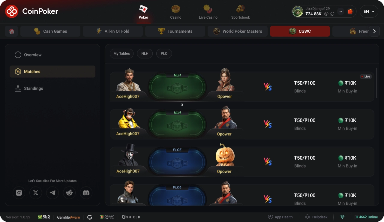 Segui l’Heads Up CGWC in qualsiasi momento, direttamente dall’applicazione desktop di CoinPoker.